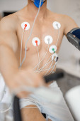 Specjalista ds. rehabilitacji przygotowujący się do aktywnego leczenia pasków z zawiesiną u pacjenta płci męskiej