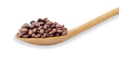 Czerwona fasola w drewnianej łyżeczce izolowana na białym tle. Plik zawiera ścieżkę wycinania.