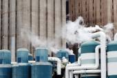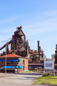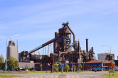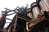 Częściowy widok zewnętrzny wielkiego pieca hutniczego.