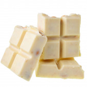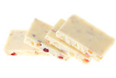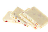 biała czekolada ciasteczka kawałki izolowane na białym tle.