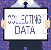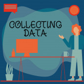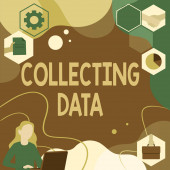 Inspiracja pokazująca znak Zbieranie danych. Word Written on Gromadzenie i pomiar informacji na temat zmiennych zainteresowania Kobieta Innowacyjne myślenie wiodące idee w kierunku stabilnej przyszłości.