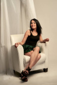 Zdjęcie "Piękny, młody, biały gitl stojący obok fotela." może być wykorzystywane do celów osobistych i komercyjnych zgodnie z warunkami zakupionej licencji Royalty-free. Obraz jest dostępny do pobrania w jakości wysokiej rozdzielczości do 5760x3840.