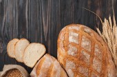 Zdjęcie "chleb pełnoziarnisty z nasion sezamu, nasion słonecznika, lnu, płatków owsianych, jęczmienia, żyta, chia, nasion dyni, maku, gałki muszkatołowej, na rustykalnym drewnianym stole z innymi pieczywem i składnikami w tle. napis na górze widoku" może być wykorzystywane do celów osobistych i komercyjnych zgodnie z warunkami zakupionej licencji Royalty-free. Obraz jest dostępny do pobrania w jakości wysokiej rozdzielczości do 5760x3840.