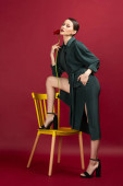 ludzie, święta i koncepcja uroczystości - szczęśliwa młoda kobieta w sukni na srebrnej folii frędzle tle zasłony