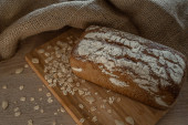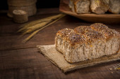 chleb zbożowy na wiejskim drewnianym stole