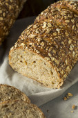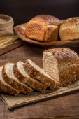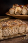chleb zbożowy na wiejskim drewnianym stole