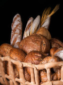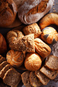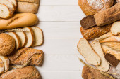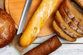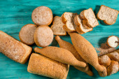 całe pieczywo na teksturowanym niebieskim drewnie, format zewnętrzny