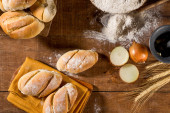 piekarz trzyma chleb na rustykalnym stole