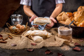 Zdjęcie "piekarz krojący chleb zbożowy na rustykalnym stole" może być wykorzystywane do celów osobistych i komercyjnych zgodnie z warunkami zakupionej licencji Royalty-free. Obraz jest dostępny do pobrania w jakości wysokiej rozdzielczości do 5760x3840.