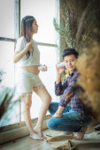 Radosna para małżeńska i mały syn bawią się na świeżym powietrzu