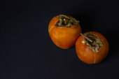 Trzy persimmon Kaki izolowane na czarnym tle w całości