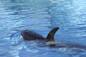 Loro park, Puerto de la Cruz, Teneryfa, Wyspy Kanaryjskie, Hiszpania, 16 grudnia 2021. Wyszkoleni wieloryby czarno-białe orki występują przed turystami na pokazach wodnych.
