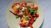 Kolacja w Guachinche, typowym zakładzie na Wyspie Kanaryjskiej na Teneryfie, gdzie lokalnie produkowane białe lub czerwone wino serwowane z domowej roboty tradycyjnym jedzeniem w słoneczny dzień, grillowane bakłażany, pomidory i ser