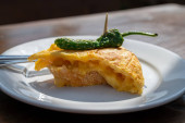Kolacja w Guachinche, typowym zakładzie na Wyspie Kanaryjskiej na Teneryfie, gdzie lokalnie produkowane białe lub czerwone wino serwowane z domowej roboty tradycyjnym jedzeniem w słoneczny dzień, sałatka ziemniaczana słodka z zieloną sałatą