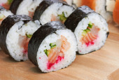 Zdjęcie "Sushi Rolls z łososiem, awokado, miękki ser." może być wykorzystywane do celów osobistych i komercyjnych zgodnie z warunkami zakupionej licencji Royalty-free. Obraz jest dostępny do pobrania w jakości wysokiej rozdzielczości do 5760x3840.