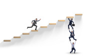 Koncepcja pracy zespołowej z biznesmenami pomagającymi sobie nawzajem
