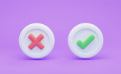 Ilustracja 3D Poprawny i nieprawidłowy przycisk ikony symbolu, ikona aplikacji mobilnej, prawy i zły przycisk