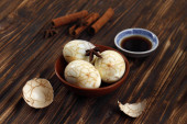 Zdjęcie "Chińskie jaja herbaty, Cha Ye Dan, Czarna herbata gotowane jaja w przyprawach, Wybrane ostrość " może być wykorzystywane do celów osobistych i komercyjnych zgodnie z warunkami zakupionej licencji Royalty-free. Obraz jest dostępny do pobrania w jakości wysokiej rozdzielczości do 5760x3840.