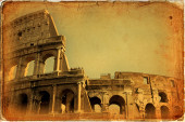 Zabytkowy obraz starożytnych kolumn obok Teatru Marcellus w Rzymie, Włochy