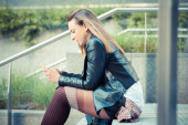 młody piękny ciemny dziewczyna punk słuchania muzyki
