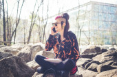 młody piękny ciemny dziewczyna punk słuchania muzyki