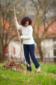 Redhead young lady digging in the garden