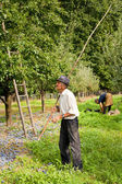 starszy rolnik wiosenne porządki w ogrodzie z prowizji