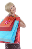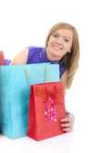 młode ładne kobiety stojącej z kolorowe torby na zakupy