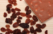 świeżo upieczone babeczki z rodzynkami i kawałki czekolady