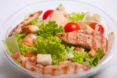 Sałatka Cezar z grillowanym kurczakiem mięsa, widok z góry