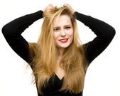 portret atrakcyjnych nastolatek dziewczyny uśmiechający się wesoły nastrój
