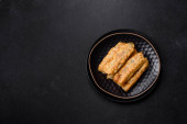 Azji fuzja wegańskie mięso wolne wodorosty morskie i ryż rolki z sosem sojowym na czarny