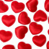 Dużo czerwonych serc na żółtym tle. Widok z góry
