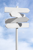 Chce lub potrzebuje koncepcji. Drewniany drogowskaz z wiadomością na tle nieba