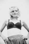 kobieta w polu pszenicy na zachodzie słońca