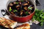 Zdjęcie "Przygotować wszystkie składniki potrzebne do gotowania małże w sosie ostrygowym. Obrać cebulę i czosnek, umyć. Wypłukać również małże, upewnić się, że wszystkie muszle są szczelnie zamknięte, wyrzucić wszystkie otwarte." może być wykorzystywane do celów osobistych i komercyjnych zgodnie z warunkami zakupionej licencji Royalty-free. Obraz jest dostępny do pobrania w jakości wysokiej rozdzielczości do 5760x3840.