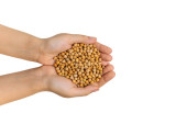 surowy ciecierzyca w rękach na białym, izolowanym tle