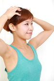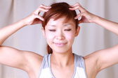 Azjatycki chiński dama ziewanie po przebudzeniu