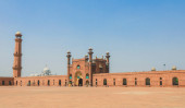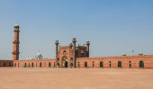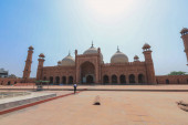 Widok z lotu ptaka na kongregacyjny meczet Badshahi Mughal w Lahore, prowincja Pendżab, Pakistan