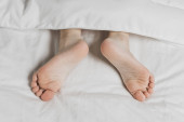 Zdjęcie "Childs nogi pokryte są białą pościelą. Ciepło domowego komfortu" może być wykorzystywane do celów osobistych i komercyjnych zgodnie z warunkami zakupionej licencji Royalty-free. Obraz jest dostępny do pobrania w jakości wysokiej rozdzielczości do 5760x3840.