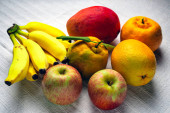 Góra zobaczyć świeże owoce na białym tle. Witamina C.