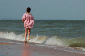 Szczęśliwa rodzina odpoczywająca na plaży nad Morzem Czarnym, Krym