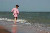 Szczęśliwa rodzina odpoczywająca na plaży nad Morzem Czarnym, Krym
