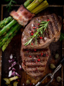befsztyk na drewnianym stole