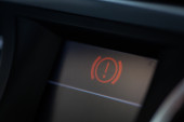 Zbliżenie ujęcia z pulpitu cyfrowego nowego samochodu, pokazującego moc i ładunek.
