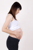 piękne kobiety w ciąży. na białym tle nad białym tle