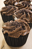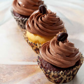deser z babeczki czekoladowe ozdobiony kremem karmelowym