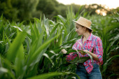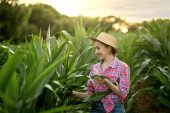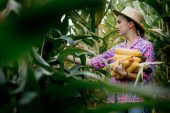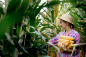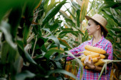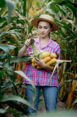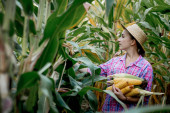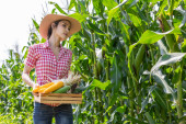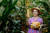Zdjęcie "Rolnik trzymający kolby kukurydzy w ręku na polu kukurydzy." może być wykorzystywane do celów osobistych i komercyjnych zgodnie z warunkami zakupionej licencji Royalty-free. Obraz jest dostępny do pobrania w jakości wysokiej rozdzielczości do 5760x3840.