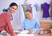 Nowoczesny młody projektant mody pracujący w studio.