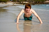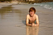 Zdjęcie "szczęśliwym chłopcem czerwony włosów jest korzystających z plaży" może być wykorzystywane do celów osobistych i komercyjnych zgodnie z warunkami zakupionej licencji Royalty-free. Obraz jest dostępny do pobrania w jakości wysokiej rozdzielczości do 5760x3840.